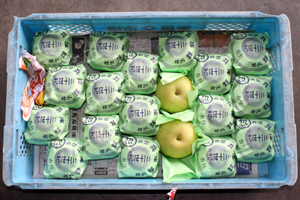 <新高梨(にいたかなし)>果肉はやわらかく、みずみずしく、風味豊かな甘さをもっています。また、日持ちが良いのも特徴です。